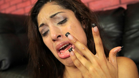 Crystal Lopez is a hot Latina and definitely has what it takes to be on LatinaAbuse. Unlike the other beat fuckin' pigs that show up, you can tell she's used to deep throat foot long cocks with no problem. Her petite frame took the big cock down her throat over and over, and once she was done getting face fucked, she lays on her back and gets screwed deep in her pussy and ends up with a creamy load of jizz to her pretty face.